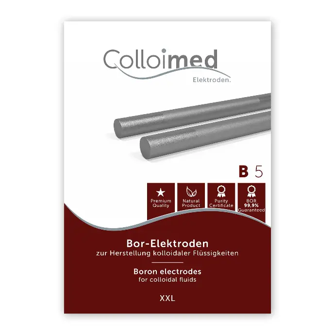 Ab sofort wird die Herstellung von kolloidalem Bor zum Kinderspiel. Denn die Colloimed Bor Elektroden sind mit einer Vielzahl an Kolloidgeneratoren kompatibel. Egal, ob Sie Anfänger oder Profi sind, mit unseren Elektroden gelingt Ihnen die Herstellung Ihrer kolloidalen Dispersionen mühelos. Denn dank der einfachen Handhabung der Colloimed Bor-Elektroden lassen sich individuelle Mengen und Konzentrationen nämlich vollkommen unkompliziert selbst herstellen. Selbst große Mengen an kolloidalem Bor können Sie mit unseren XXL-Elektroden innerhalb kürzester Zeit bequem von zu Hause aus produzieren.