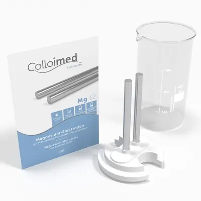 Die Colloimed Magnesium-Elektroden bestehen aus hochreinem Magnesium(Ge 99,99 % / 4N) und sind als XXL-Ausführung mit Ø 8 mm auf eine effiziente Kolloidherstellung ausgelegt. Durch die größere Elektrodenfläche lassen sich größere Mengen in kürzerer Zeit herstellen – sauber, stabil und reproduzierbar. Die Elektroden sind unbeschichtet und sofort einsatzbereit; ein passendes Anschlusskabel ist optional erhältlich und ermöglicht die Nutzung mit vielen gängigen Kolloidgeneratoren.